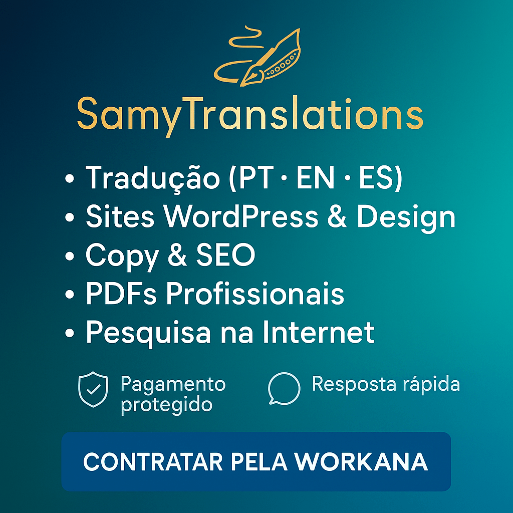 Comecei a estudar línguas bem nova e transformei essa paixão em trabalho: tradução, revisão e escrita com foco em clareza, ritmo e tom certo pro seu público. Hoje atuo como freelancer no Workana, criando conteúdo e sites que ranqueiam.